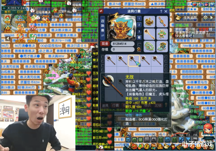 随后,旭旭宝宝开启鉴定模式。最亮眼的是一把423初伤的神佑斧头,他表示鉴定了上万件装备,还是头一回见到非专用还能满伤+神佑的武器。